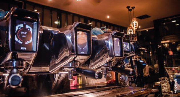 Espressobar Schrägstrich Stehcafé in traditionell italienischer Aufmachung. Qualitätskaffeevariationen treffen auf authentisches Süßgebäck und herzhafte Snacks à la Panini. Verzehrt wird entweder an der langen Theke, den Innenplätzen mit Sicht auf vorbeiziehende Passanten oder an den überdachten Außenplätzen.