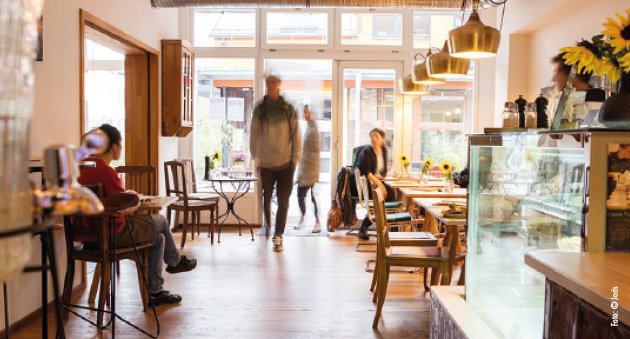 Café, Essen, Bio - Lecker! Erst im Juni 2018 eröffneten JOnas & FloRIS (aha!) im Stühlinger Gewerbehof an der Eschholzstraße. Neben Kaffee aus der Siebträgermaschine, erlesenen Tees, regionalem Wein/Bier, gibt‘s Frühstück, wechselnden Mittagstisch sowie hausgemachte(s) Kuchen und Eis. Abendkarte ab 17 Uhr.