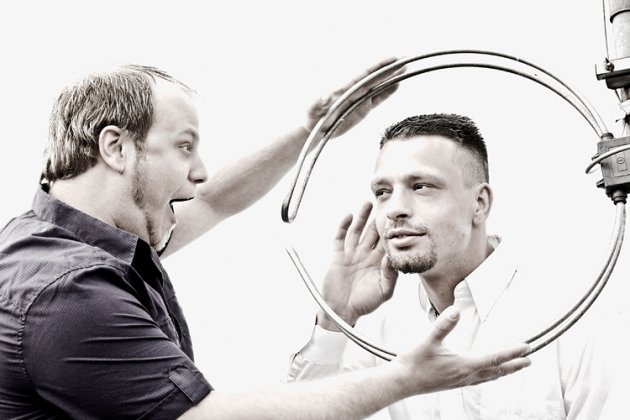 Andree: Ich schmier die Stullen und Eric isst sie auf. ;-)  Jeder hat bei uns seine feste Aufgabe. Eric ist unser künstlerischer Kopf, der alle unsere Ideen ins Musikalische umsetzt. Meistens macht er das in seinem Studio in Nürnberg. Wenn er neue Ideen hat, schickt er diese an mich rüber bzw. er bringt sie mit, wenn wir uns vor unseren Gigs sehen. Wenn ich dann noch Ideen dazu habe, versuche ich diese mit in die jeweiligen Tracks einzubauen oder wir basteln gemeinsam in unserem Berliner Studio daran herum.
