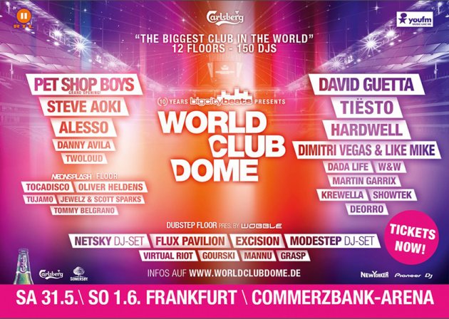 Am 31. Mai und 1. Juni 2014 entsteht in der Mitte Europas ein Electronic Music Festival, das mit einer halben Million Quadratmetern Partyfläche inmitten einer Weltstadt gigantischer nicht sein könnte. Und auch das Line-Up verspricht Rekorde: David Guetta, Tiësto, Hardwell, Steve Aoki, Dimitri Vegas & Like Mike, Alesso, Dada Life, W&W, Martin Garrix, Showtek, Krewella und Danny Avila stehen als Headliner an der Front. Letztes Jahr noch unbeachtet, stehen dieses Mal auch die Topstars der Dubstep-/Drum’n’Bass-Szene im Fokus und so kommen unter anderem Netsky, Flux Pavillon, Excision und Modestep vorbei, um eine dicke Portion an Bässen abzuladen. Eröffnet wird das Spektakel übrigens am 31. Mai von niemand geringerem als den Pet Shop Boys. Manche Bereiche der Arena sind bereits ausverkauft, bei den Tickets ist also ranhalten angesagt. www.bigcitybeats.de